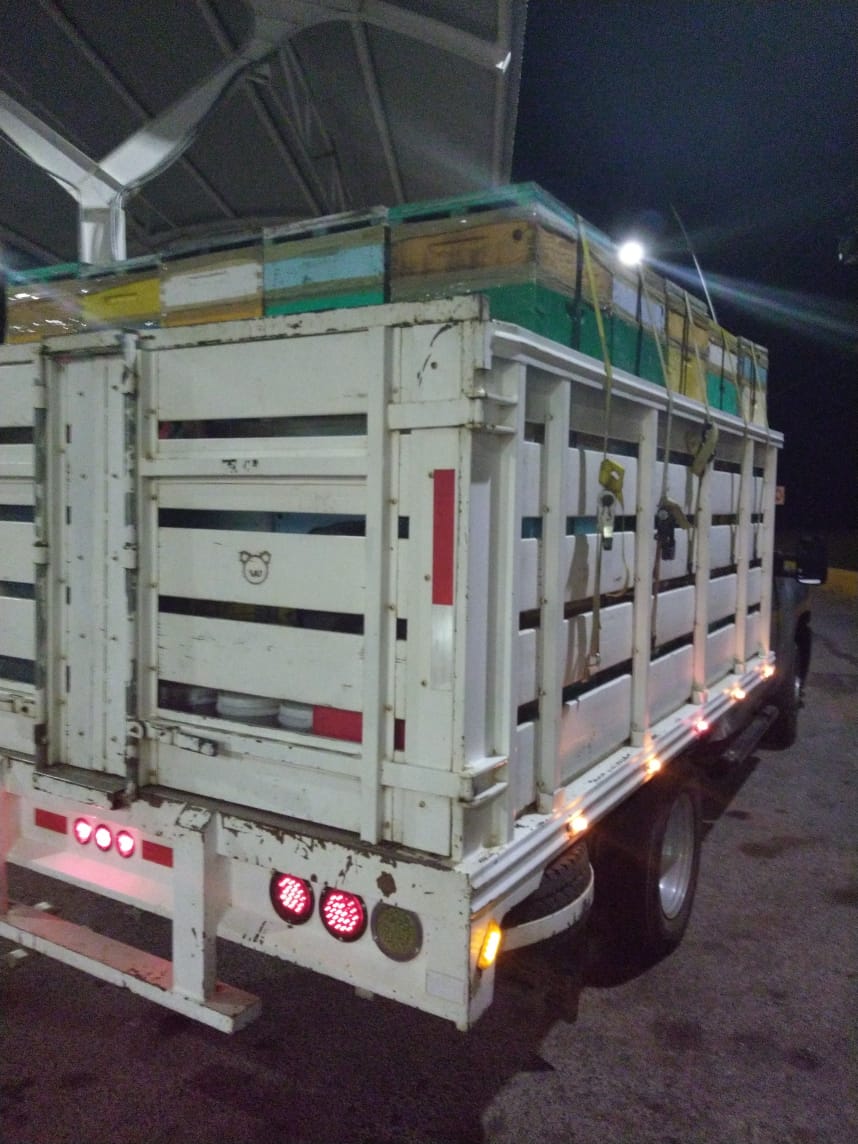 Detalló que los uniformados observaron que una camioneta Nissan NP300, estaquitas, con placas de circulación del estado de Zacatecas, transportaba 36 colmenas, pero al detenerlos para inspeccionarlos, los tripulantes de la unidad no traían documentación de las mismas.