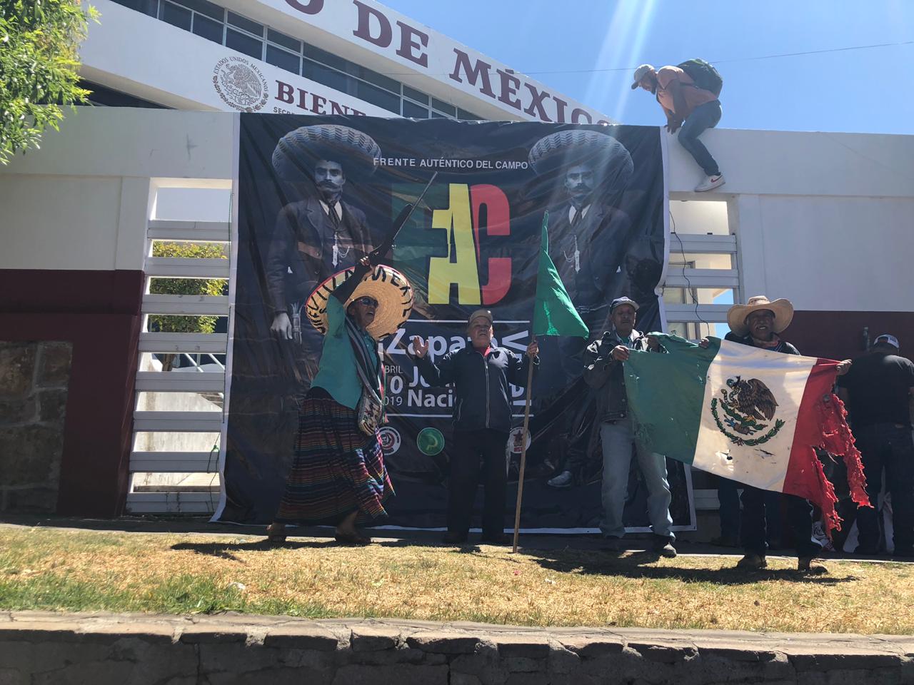 Alrededor de 600 campesinos pertenecientes a diferentes organizaciones realizaron una marcha que salió de la Plaza Bicentenario hacia las instalaciones de la Secretaría del Bienestar, antes Sedesol; misma que fue tomada por los manifestantes, con la intención de conmemorar el aniversario luctuoso de Emiliano Zapata y reclamar los derechos de las tierras.