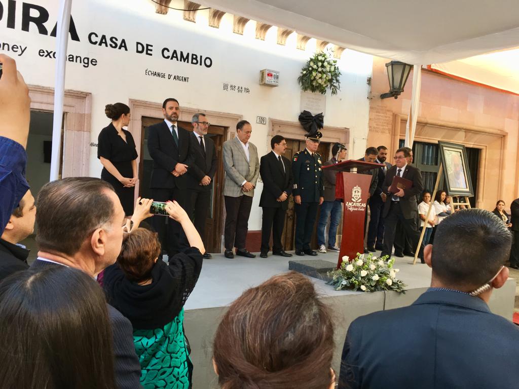 Poco antes de las 11:30 horas, el gobernador Alejandro Tello, acompañado por su esposa, Cristina Rodríguez, presidente honorífica del Sistema Estatal para el Desarrollo Integral de la Familia (SEDIF), arribó a la casa marcada 109 de la calle Allende, en el Centro Histórico de la capital, donde nacieron Pedro y Rafael Coronel.