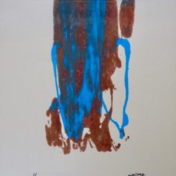 Además, se integra a la muestra un ebru o papel jaspeado de gran tamaño (99 x 69 cm). Esta selección revela el proceso de investigación estética y técnica que prosigue constantemente el artista, desde hace aproximadamente tres decenios.