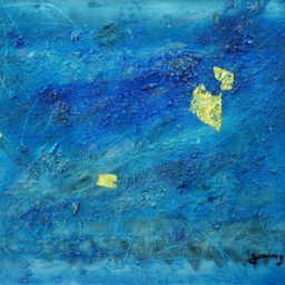 Una segunda serie de pintura al óleo sobre madera con hoja de oro se compone de cinco piezas, voluntariamente sin título, es de tamaño mediano (30 x 37 cm y 37 x 30 cm).