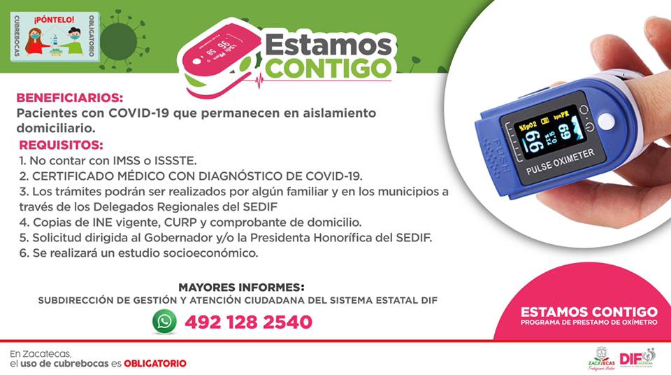 Se puede realizar la solicitud en los DIF municipales, con las y los delegados del SEDIF y las jurisdicciones de la Secretaría de Salud de Zacatecas, en los números de Whatsapp 4929256800 y telefónico 4921282540, y a través de la página de Facebook SEDIF Zacatecas e Instagram sedifzacatecas.