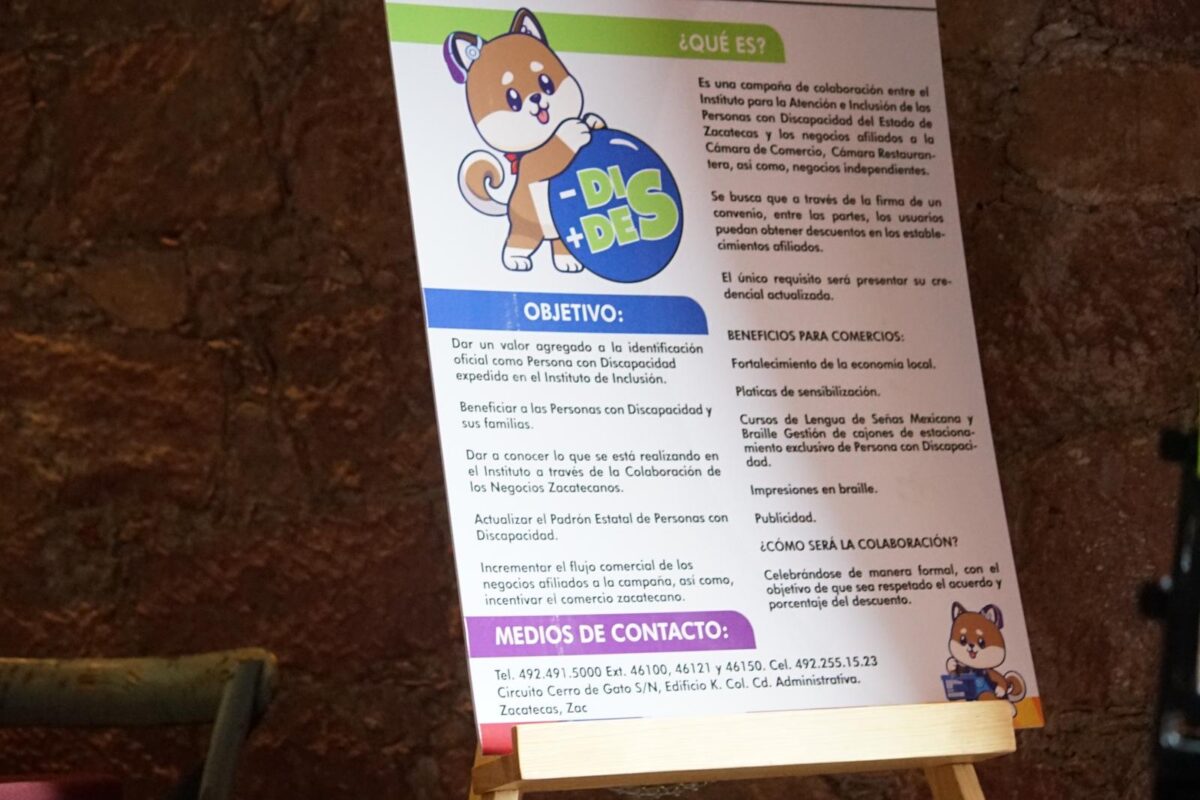 En este sentido Estela Cardenas Vargas presidenta de la Cámara Nacional de la Industria de Restaurantes y Alimentos Condimentados (CANIRAC) señaló que como negocios debemos de ser socialmente responsables y retribuir un poco de lo que recibimos, con esta campaña encontrarán diversos descuentos en diferentes negocios, agradeciendo a los negocios que ya se sumaron e invitando a que más negocios se acerquen se acerquen inscribiéndose en el portal https://inclusion.zacatecas.gob.mx/-Dis+Des/index.html#about