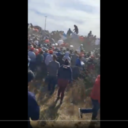 A la altura de la empresa Cesantoni, a unos cuantos metros de la caseta de peaje del municipion de Calera, cientos de personas se abalanzaron sobre las cajas regadas algunas y otras todavía dentro de la caja del trailer, para apropiarse de las latas de cerveza empaquetadas, ante la mirada impasible de la policía estatal.