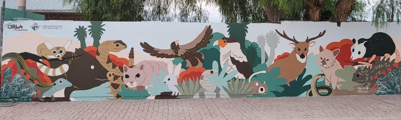 La obra artística, pintada en el Jardín de Niños “Diego Rivera” de la comunidad de San Tiburcio, tiene como propósito visibilizar y valorar la vida silvestre que habita en la región de Mazapil, Zacatecas. El mural representa especies emblemáticas del habitat local, fundamentales para el equilibrio ecológico, la regulación del clima y la provisión de servicios ecosistémicos clave, como la conservación del agua.