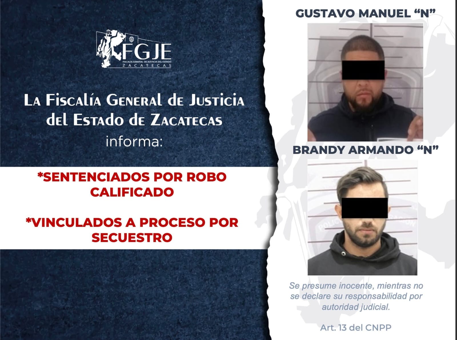 Asimismo, el equipo de investigación de la Vicefiscalia de Fresnillo al ser exhaustivos en su investigación, lograron acreditar la probable participación de Brandy “N” y Gustavo “N” en diversos hechos suscitados en el mineral durante el año 2024, por lo que el día de hoy, lograron que ambas personas fueran vinculadas a proceso por el delito de secuestro express agravado.
