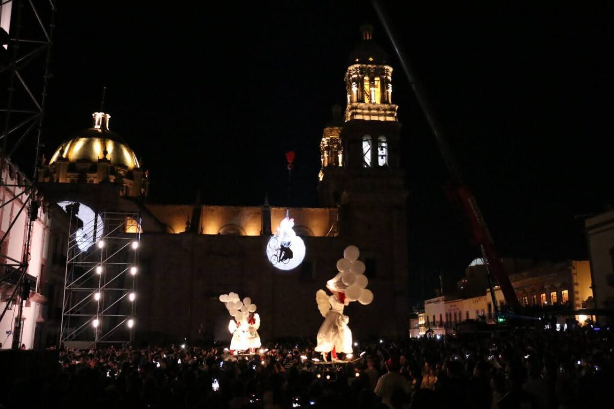Con la coordinación del Instituto Zacatecano de Cultura (IZC) “Ramón López Velarde”, la puesta en escena provocó la ovación y aplausos de las y los zacatecanos en los primeros minutos de su desarrollo al ser integrada la pieza “Cucurrucucú paloma”, del compositor fresnillense ,Tomás Méndez Sosa, y más tarde la proyección de la arquitectura zacatecana.