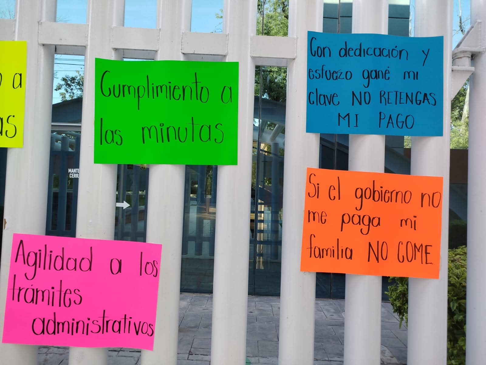 ZACATECAS.- Este viernes trabajadores de escuelas normales en Zacatecas se manifestaron en las oficinas centrales de la Secretaria de Educación (SEZ) exigiendo el cumplimiento con la re categorización pactada y adeudos laborales.