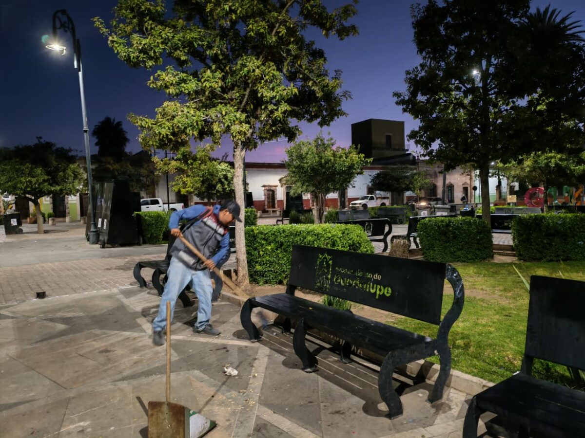 “Ya la cuadrillas de limpieza están trabajando, estamos supervisando para que las y los guadalupenses encuentren las calles y este jardín limpios, también aprovechamos que todavía no sale el sol y revisar que las luminarias estén funcionando de manera adecuada”, indicó el edil.
