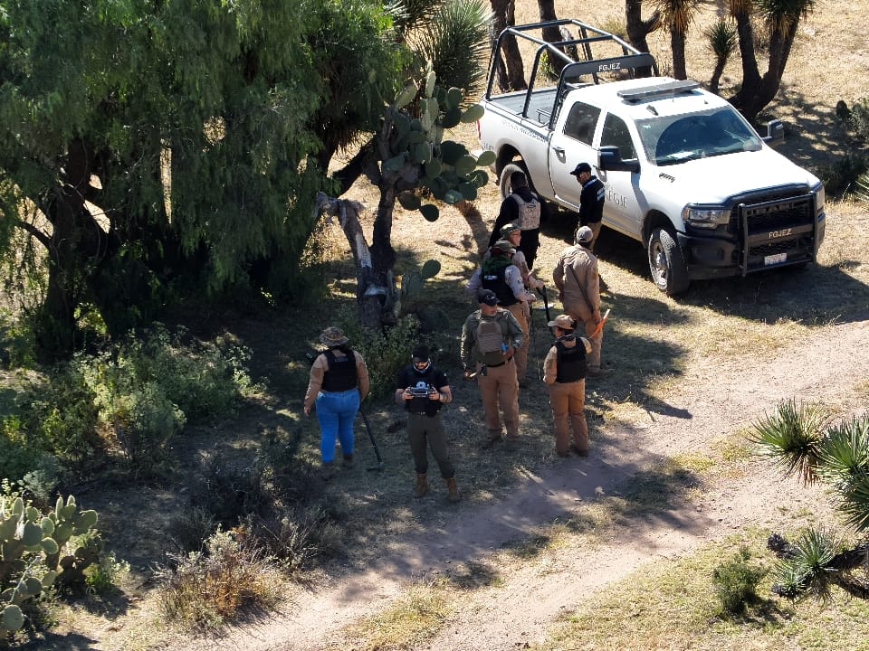 En el municipio de Pánfilo Natera, en donde realizaron prospecciones forenses, acompañados por representantes de colectivos de familias de personas desaparecidas, se realizaron igualmente una búsqueda forense con revisión de varios espacios, en los que se utilizaron georadares, herramientas de mano y drones.