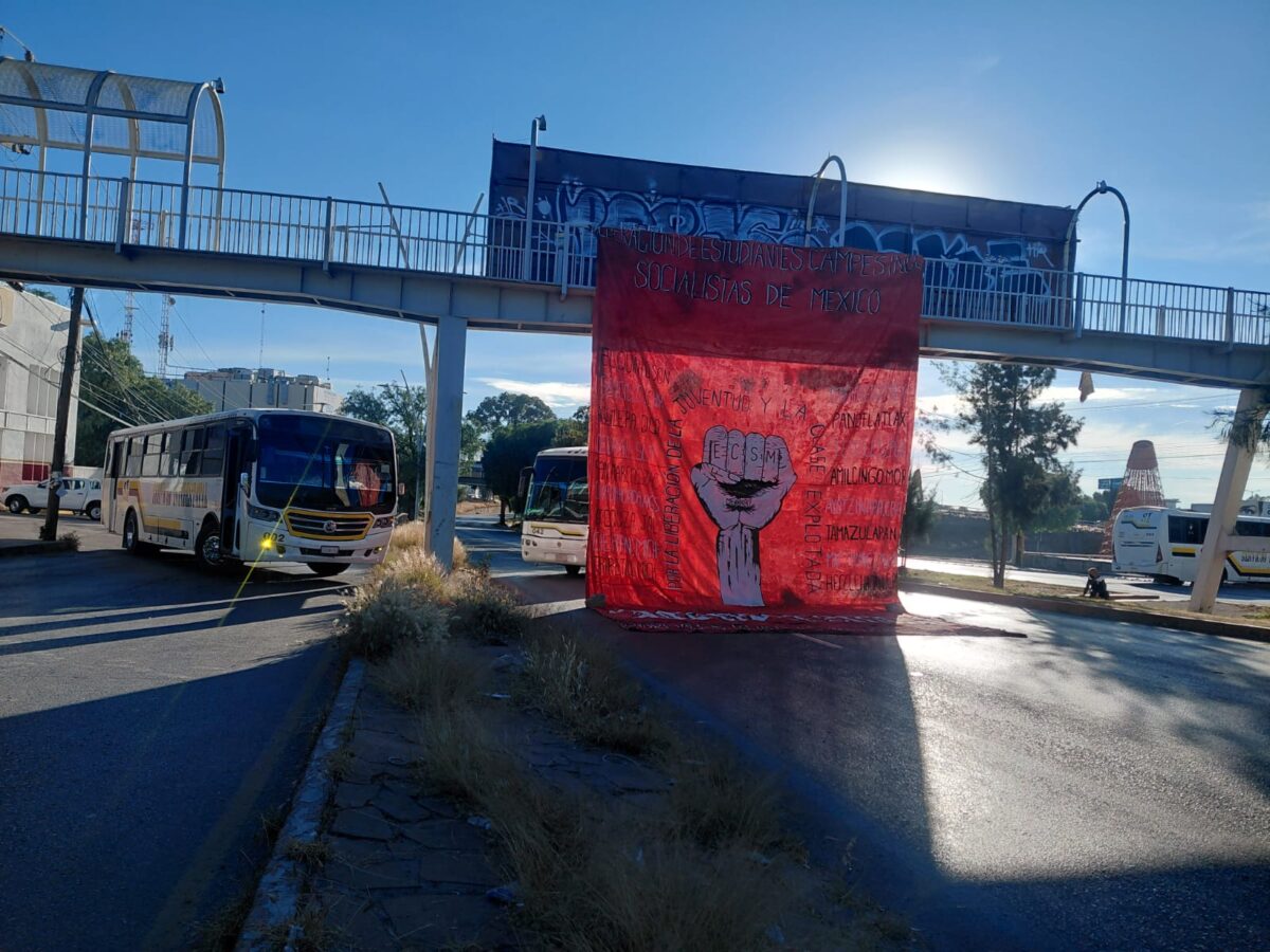ZACATECAS. – Desde las 7 horas de este miercoles estudiantes de la Normal Rural de San Marcos bloquearon el bulevar metropolitano a la altura de la Secretaría de Educación (SEZ) exigiendo a las autoridades educativas una mesa de negociación, para que se les regrese la beca para prácticas profesionales, así como el cambio de proveedor de alimentos.