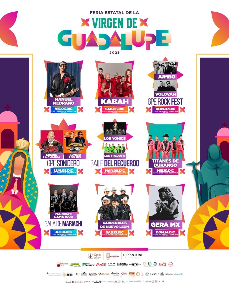 Al presentar el programa de la Feria Estatal de la Virgen en su edición 2025, el presidente municipal de Guadalupe, José Saldívar, afirmó que “va ser un cartel muy variado en todos los sentidos, no solamente habrá temas artísticos y musicales, y lo principal, que no perdamos la mística que es una feria patronal, en honor a nuestra Virgen de Guadalupe”.
