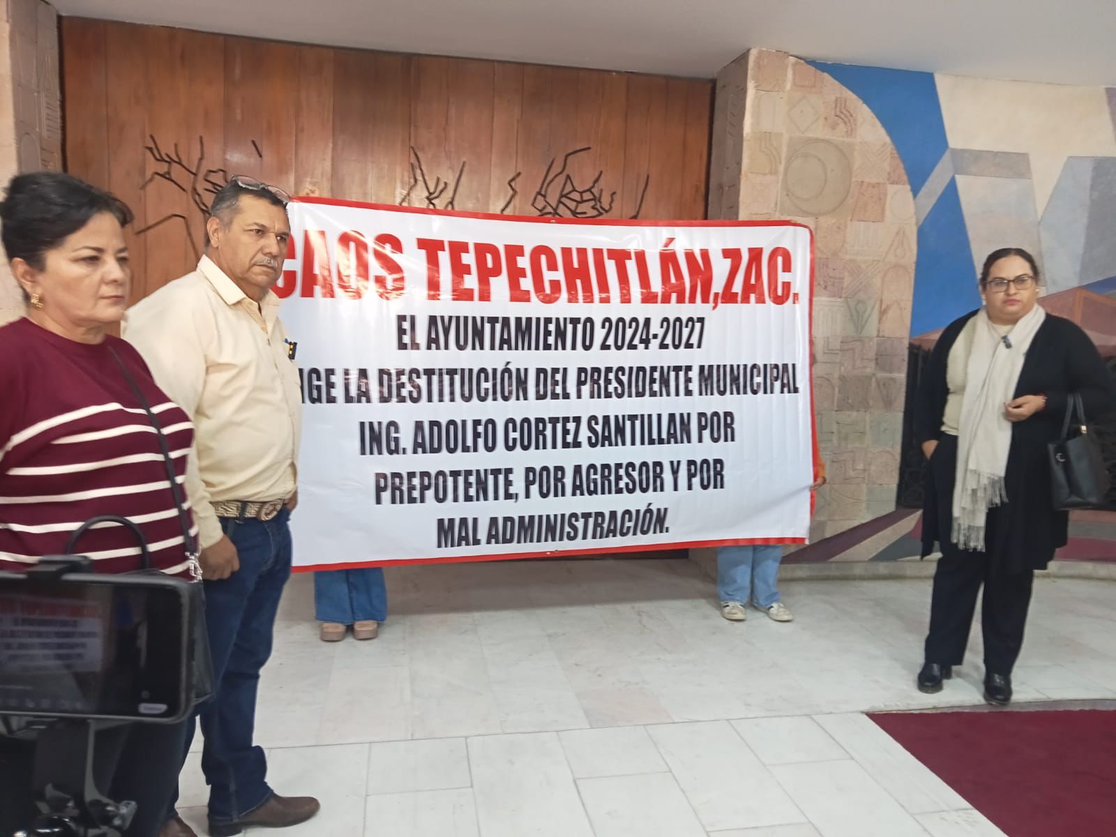 ZACATECAS. – La síndico del ayuntamiento de Tepechitlán, Elsa Luna Arellano, y algunos miembros del cabildo solicitaron la intervención de los diputados de la 65 legislatura para que den solución al conflicto político que existe en este municipio, así como la destitución del presidente municipal, Adolfo Cortez Santillán.
