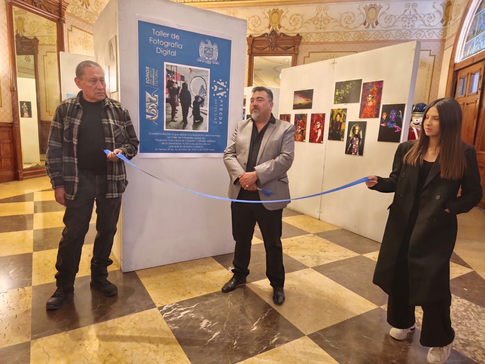 El coordinador del Programa Transversal de Extensión del Área de Arte y Cultura de la Universidad Autónoma de Zacatecas, maestro Sergio Jiménez, inauguró la exposición de los alumnos y alumnas del Taller de Fotografía Digital en el vestíbulo del teatro Fernando Calderón.