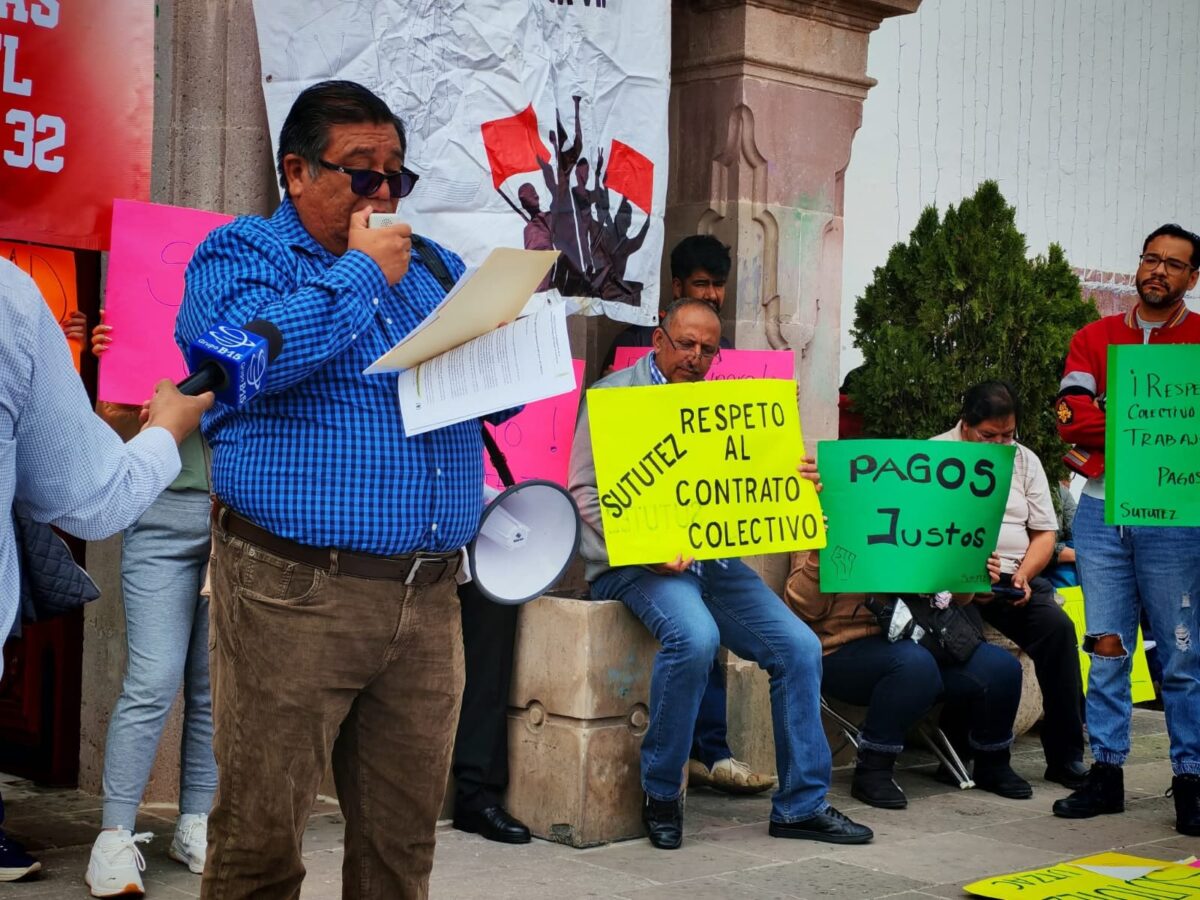 ZACATECAS. – Tras 8 días de paro de labores como exigencia al aumento salarial, este martes integrantes del Sindicato Único de Trabajadores de la Universidad Tecnológica del Estado de Zacatecas (SUTUTEZ) se manifestaron en la explanada del congreso del estado, para denunciar que gobierno del estado se negó a firmar el convenio para el incremento a su salario.