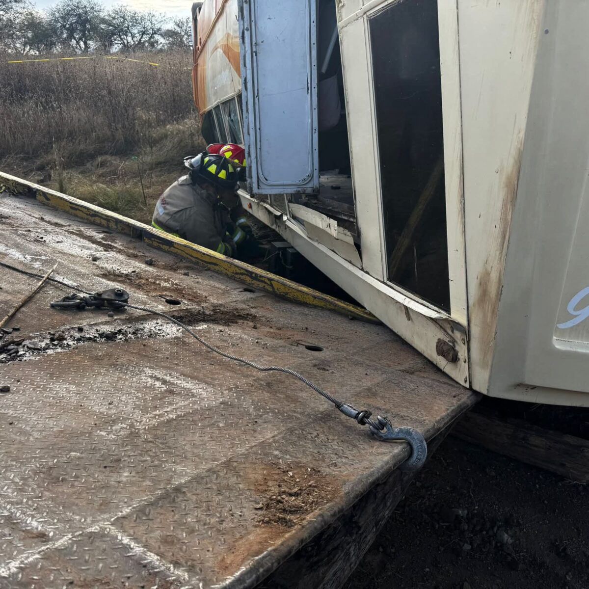 Se trata de un camión de estudiantes de la secundaria técnica 25 de Tacoaleche, Guadalupe, cuyo conductor se dio a la fuga y minutos más tarde fue detenido por elementos de la Policía Investigadora de Zacatecas de la Fiscalía General de Justicia del estado.