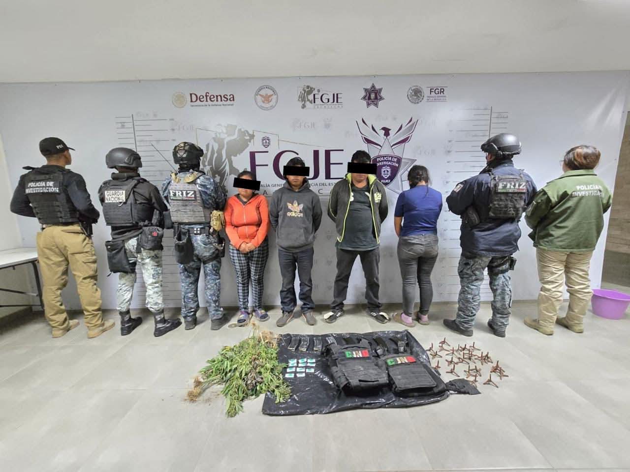 Esto durante el operativo en el que se logró el resguardo de cuatro menores de edad, aseguramiento de posible droga, cargadores, equipo táctico y un vehículo.