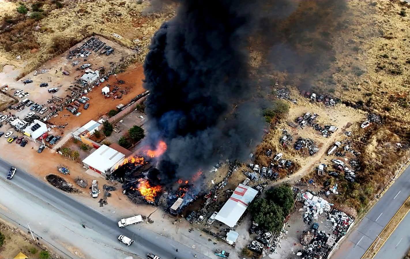 GUADALUPE. – Una nube de humo negro alertó a los cuerpos de emergencia y a los vecinos de Guadalupe provocada por un incendio que consumió en una planta recicladora y parte yonke ubicados frente a la Unidad Deportiva del municipio.