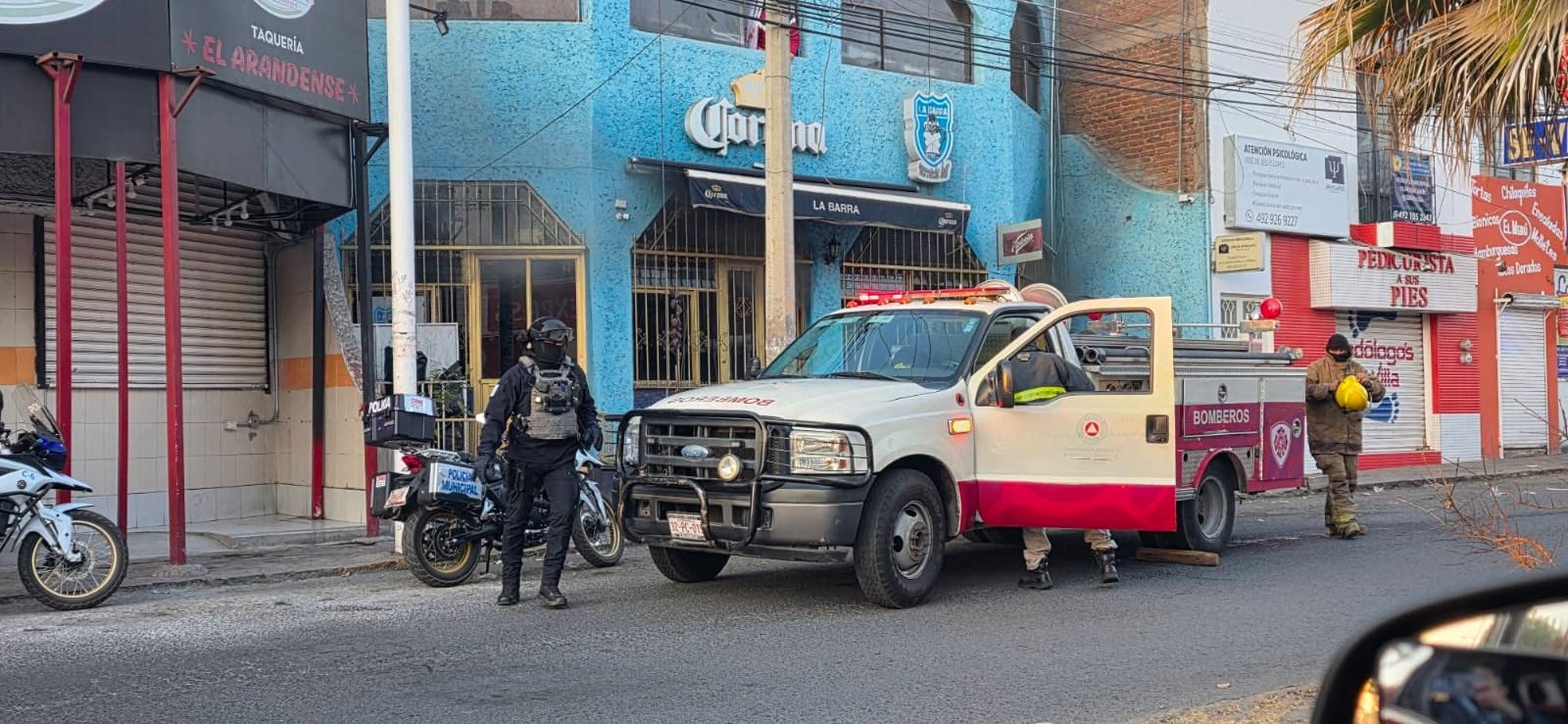 GUADALUPE.- La mañana de este lunes se incendio un bar ubicado sobre la vialidad Francisco García Salinas, a la altura del fraccionamiento Arboledas, en donde solo se registraron daños materiales.