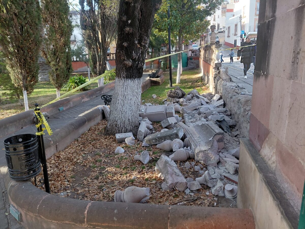 ZACATECAS. – La madrugada de este lunes un automóvil se impactó sobre la balaustrada del Jardín Morelos, mejor conocidos como Jardín de la Madre en la capital, hasta el momento se desconoce la identidad del responsable.