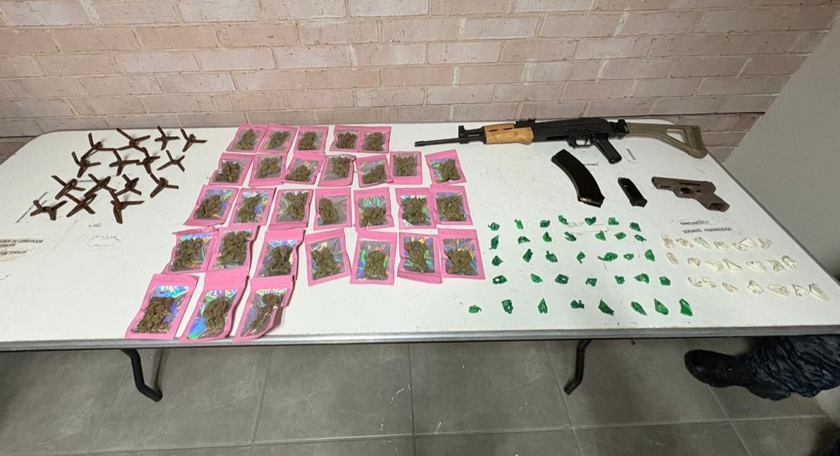 Como resultado del operativo, se aseguraron dosis de metanfetamina, cocaína, marihuana y poncha llantas, dos armas de fuego —una corta tipo escuadra y un arma larga— con sus respectivos cargadores abastecidos con 12 y 40 cartuchos útiles, respectivamente, así como un vehículo marca Volkswagen Virtus con placas del estado de Jalisco, presuntamente utilizado en la comisión de actividades ilícitas.